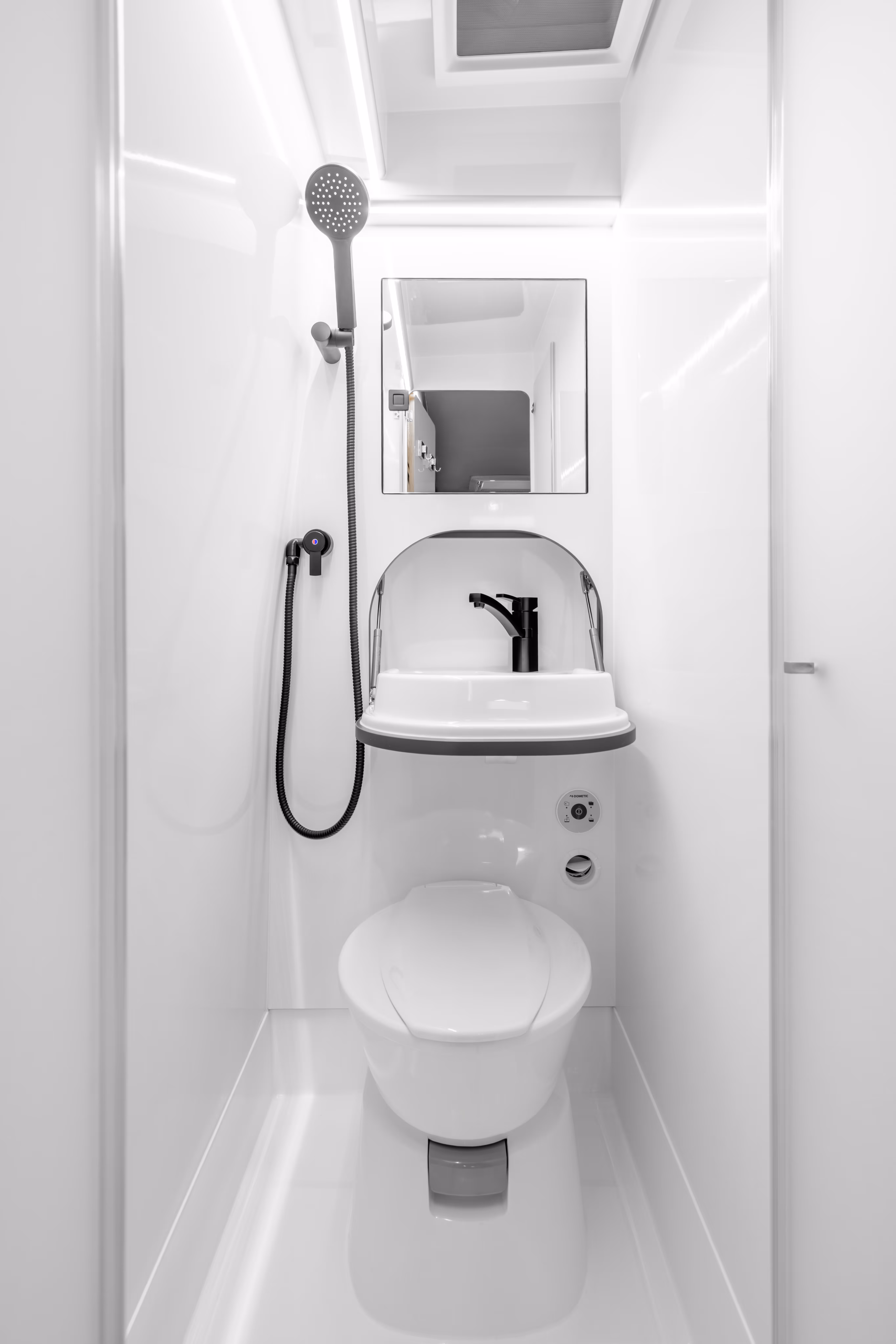 Under motorpanseret har vi tatt et helt nytt grep ved å flytte tunge tekniske komponenter som bodelsbatteriet samt ferskvanns- og gråvannstankene helt bak – for å få en optimal vektfordeling.