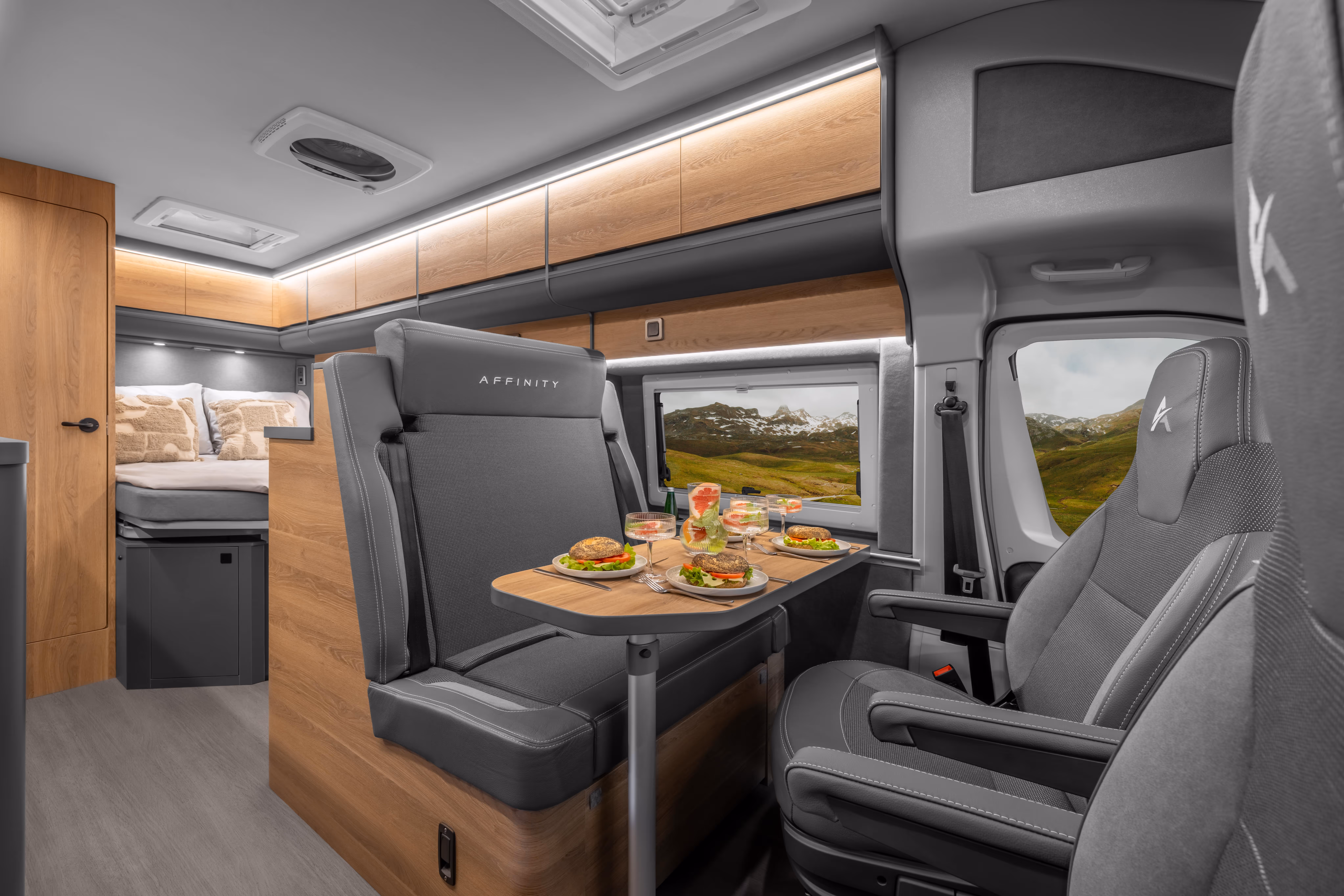 Affinity Camper Van byr på bekvemme boforhold for inntil fire personer. Fleksibel konfigurasjon gjør at bobilen kan tilpasses en rekke ulike brukerbehov, fra par med to voksne til familier på fire. Med den største kassevognen i Fiats sortiment som basekjøretøy er den utviklet for å gi maksimal plass innvendig.