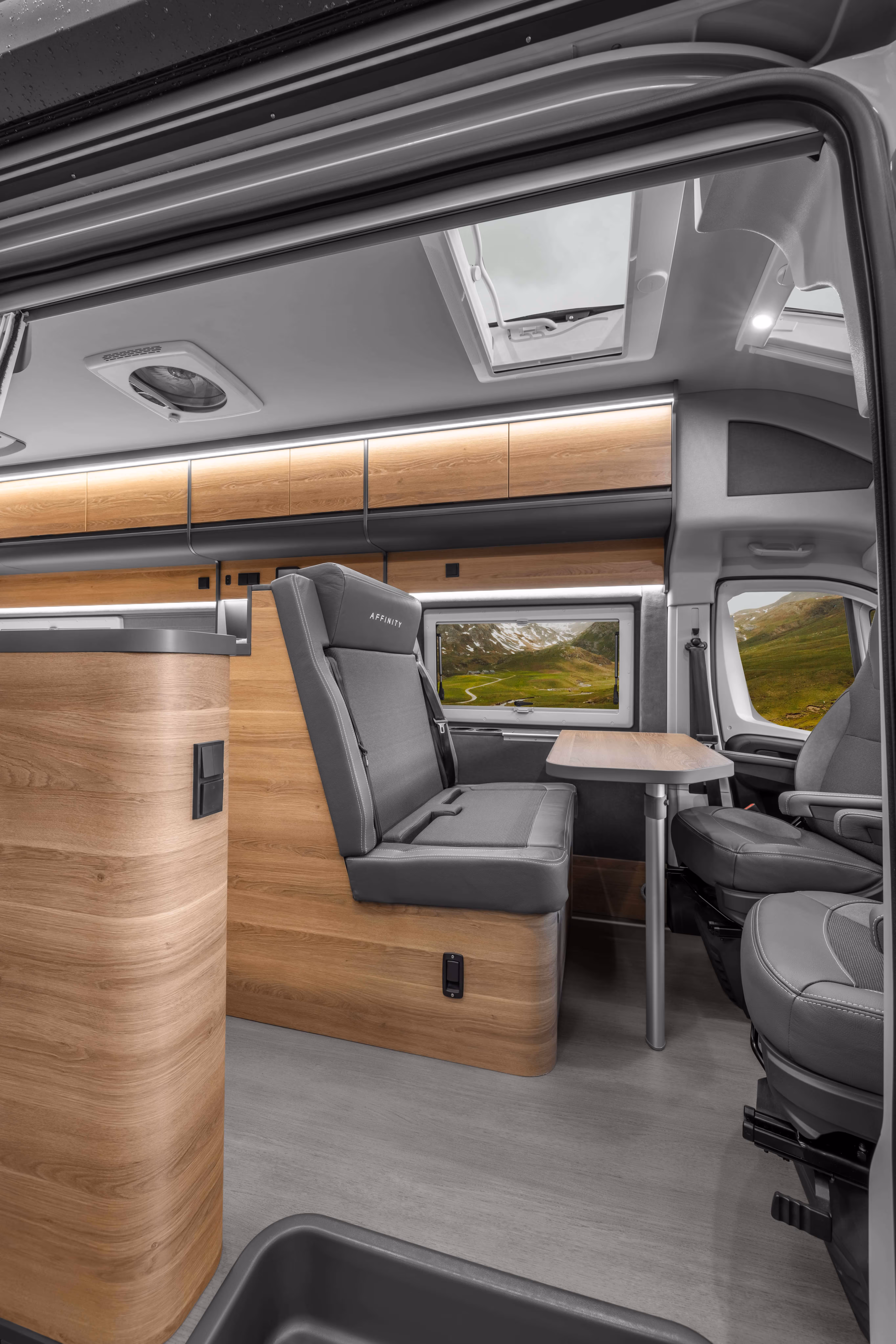 The Affinity Camper Van offers a comfortable living space for up to four people. Flexible configuration allows the vehicle to be adapted to a variety of user needs, from two travellers to a family of four. Based on the largest van in the Fiat range, it is designed to provide maximum interior space.